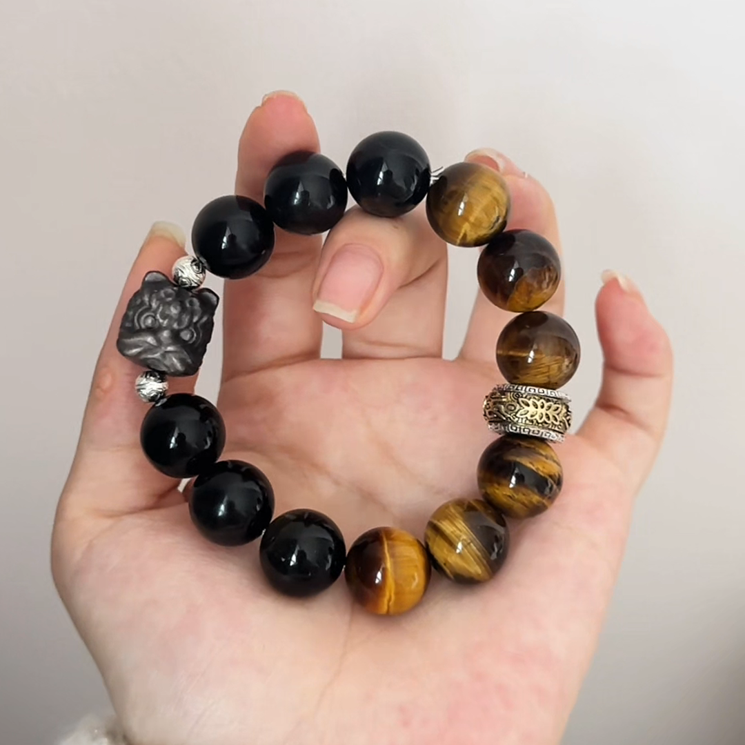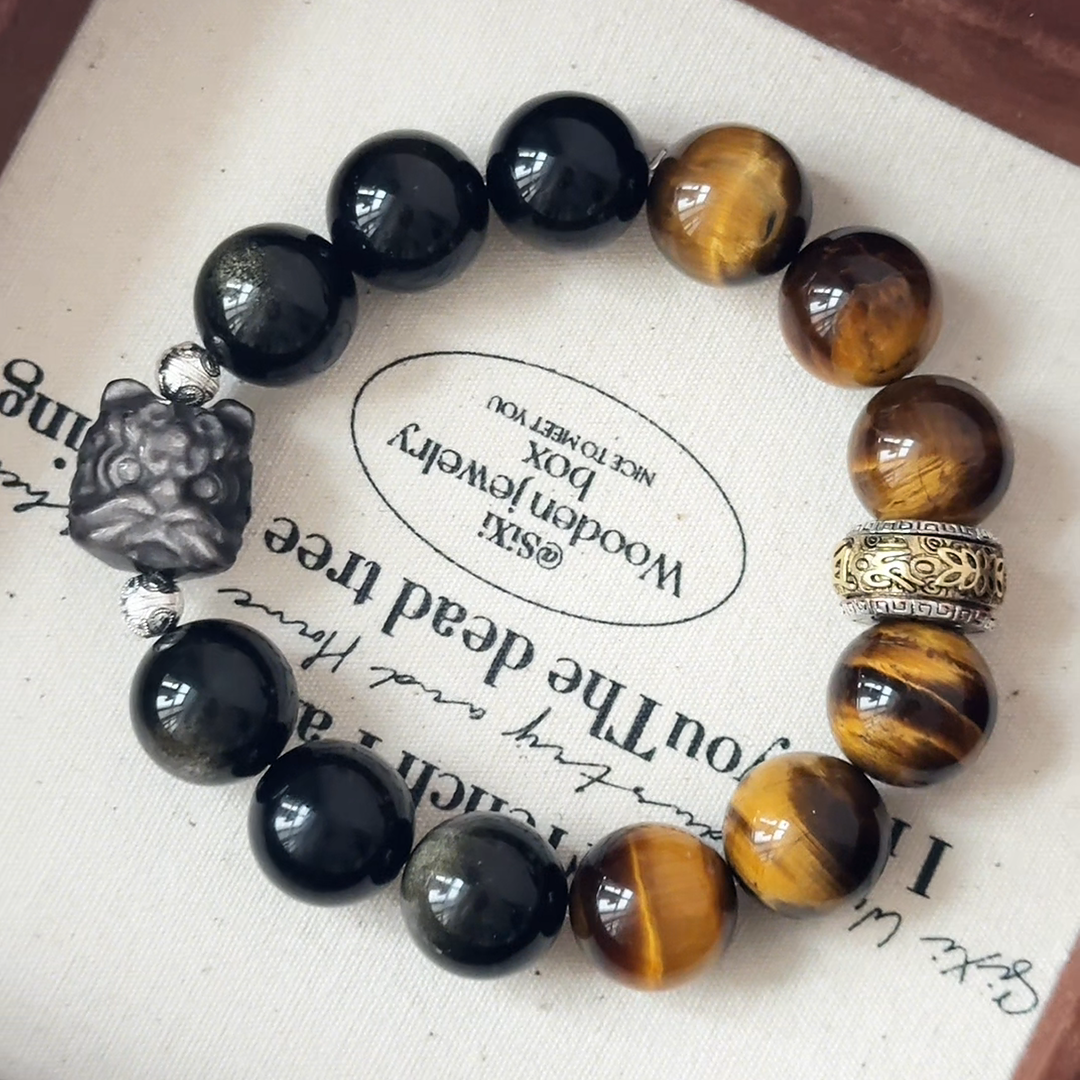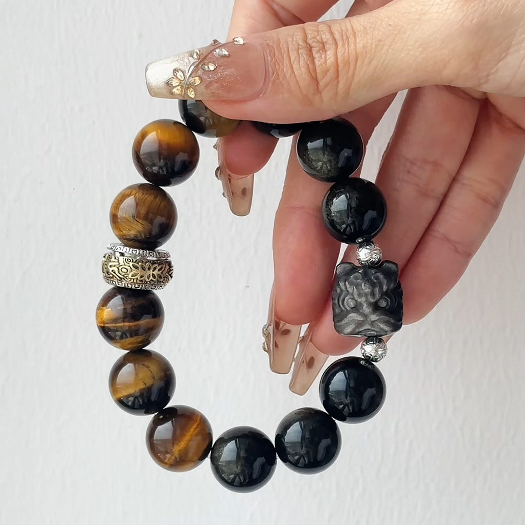 The Lionheart Bracelet | Tiger's Eye & Golden Obsidian | For Courage & Protection