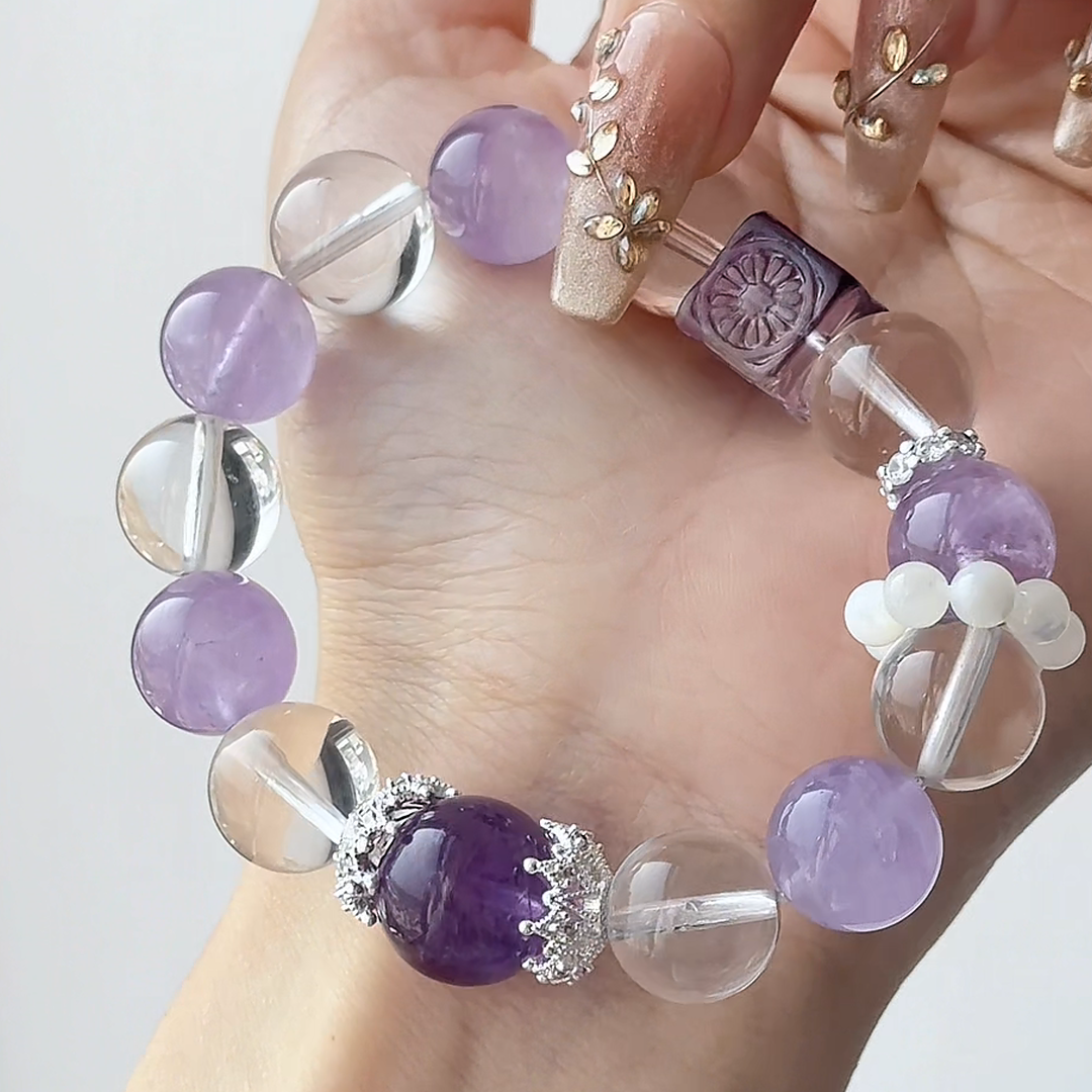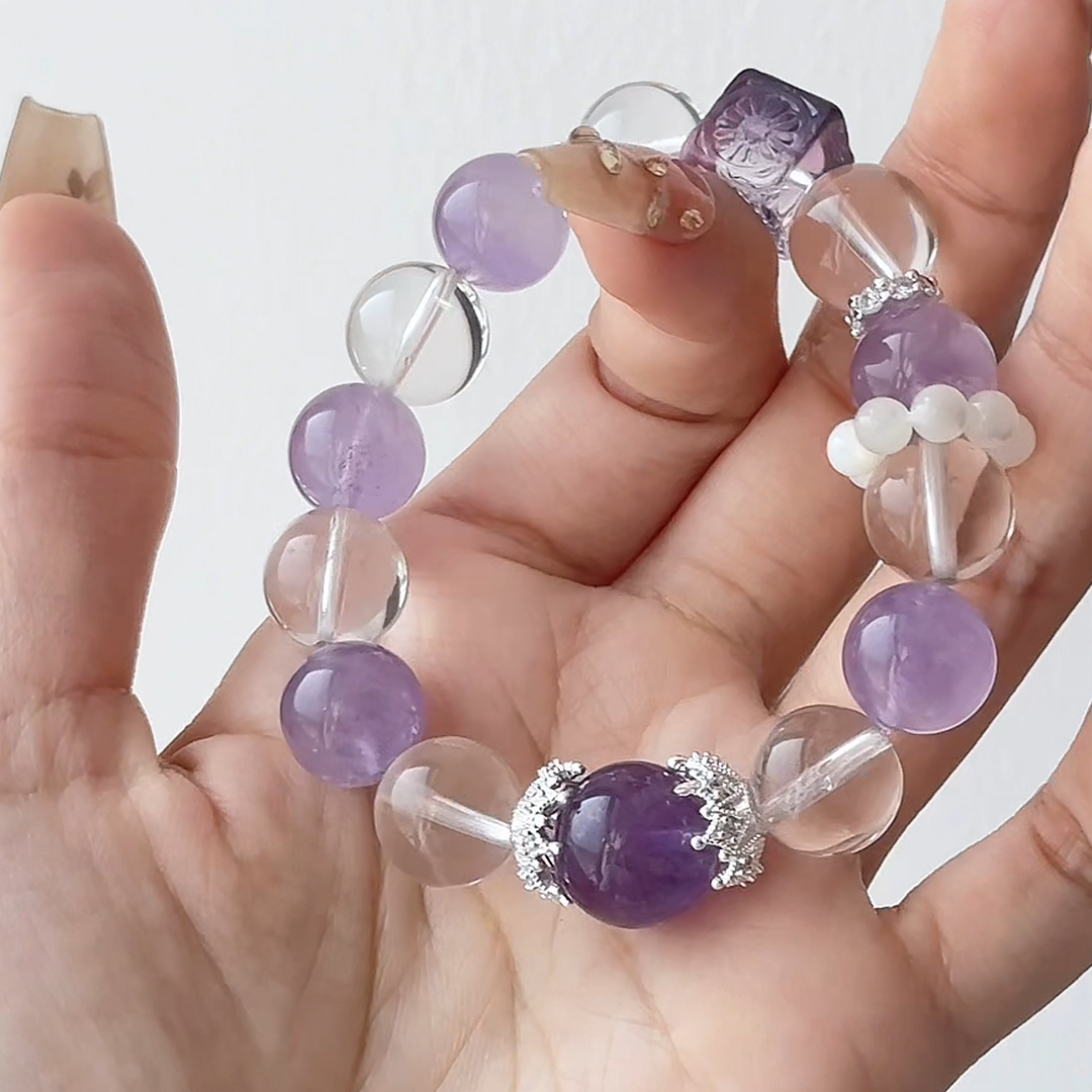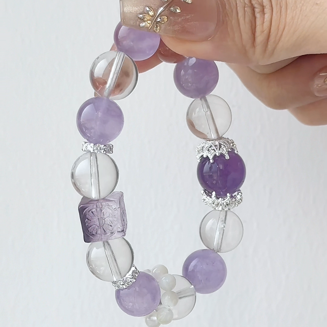 The Serenity Sorbet Bracelet | Lavender Amethyst & Clear Quartz | For Calm & Clarity