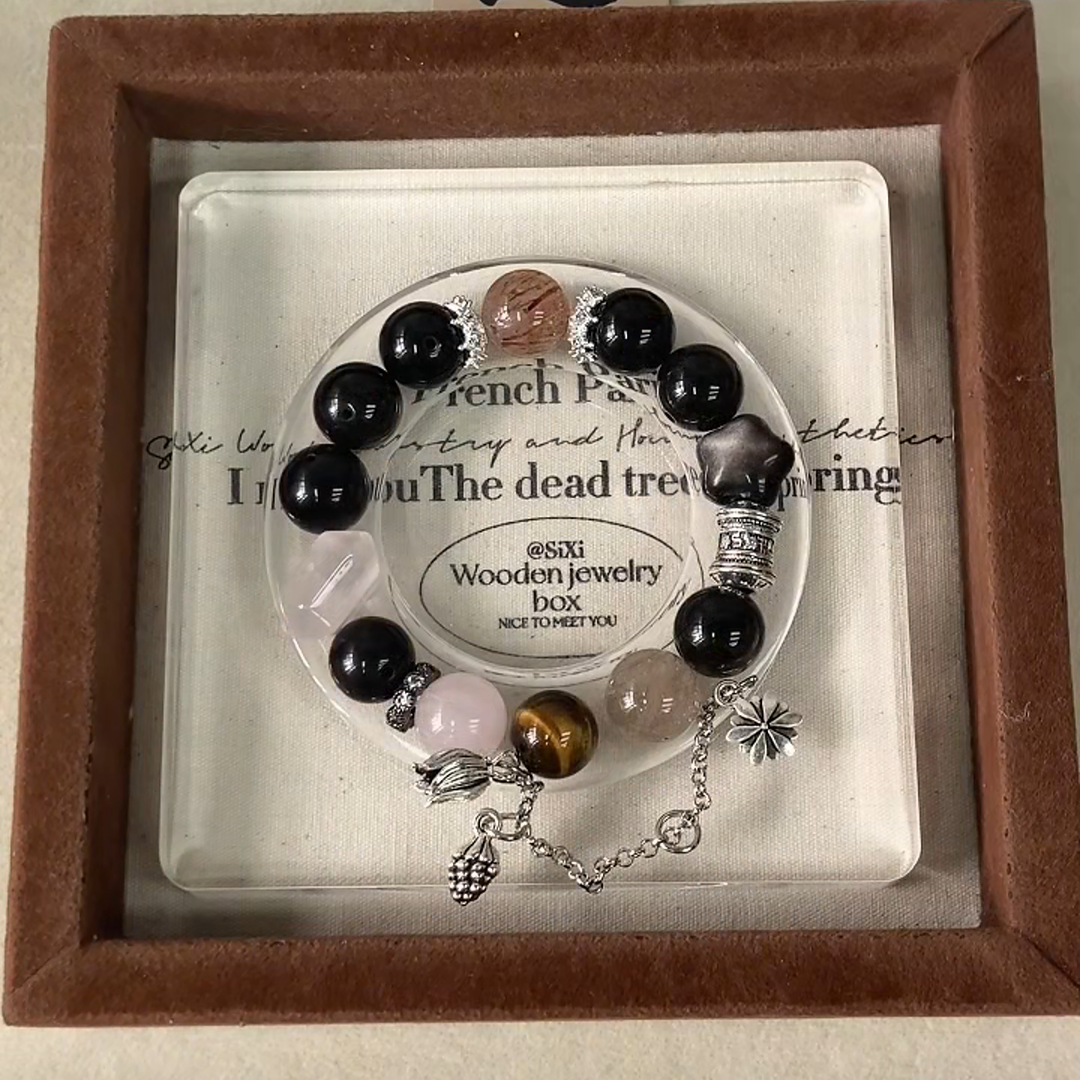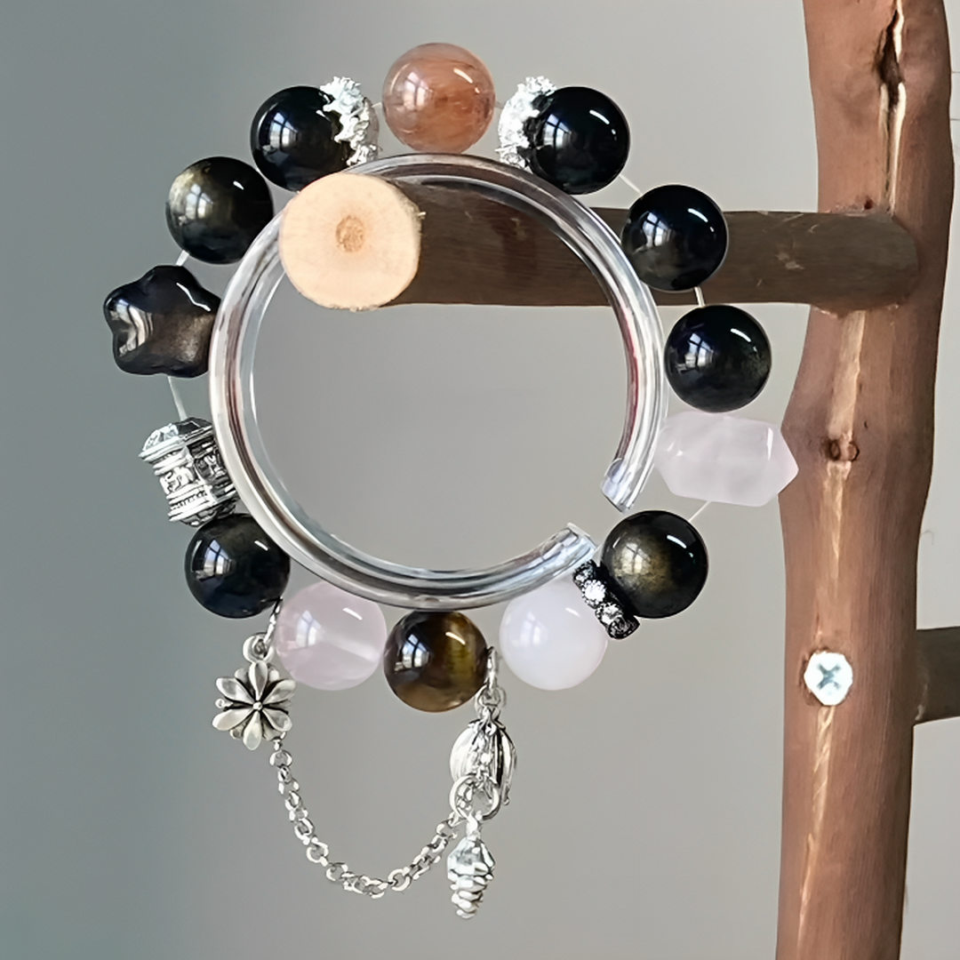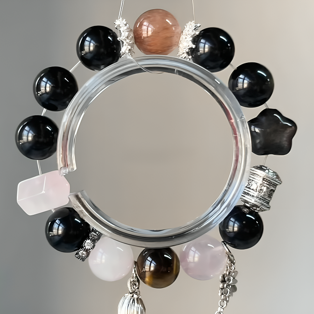 🌌 Silver Sheen Obsidian (Deep Space & Your North Star): This is your energetic shield. Its job is to protect your aura from negativity and doubt as you navigate your journey. Like deep space, it holds your potential, while the star charm is your personal North Star, keeping you locked on your true destiny.