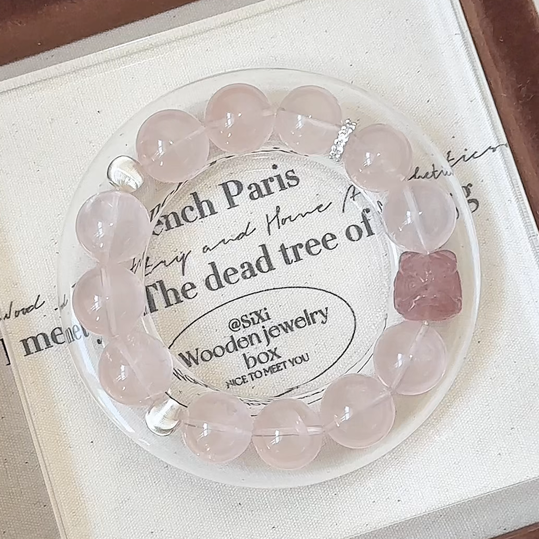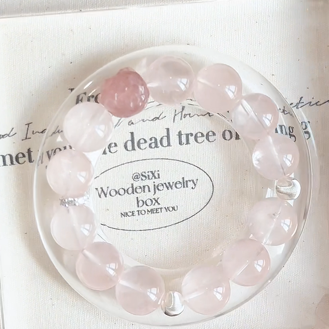 💖 Rose Quartz: "The Heart's Velvet." The soft, nurturing base of this bracelet. Rose Quartz gently opens your heart to give and receive love in all its forms—self-love, romantic love, and universal compassion. It fosters emotional healing and a deep sense of inner peace.