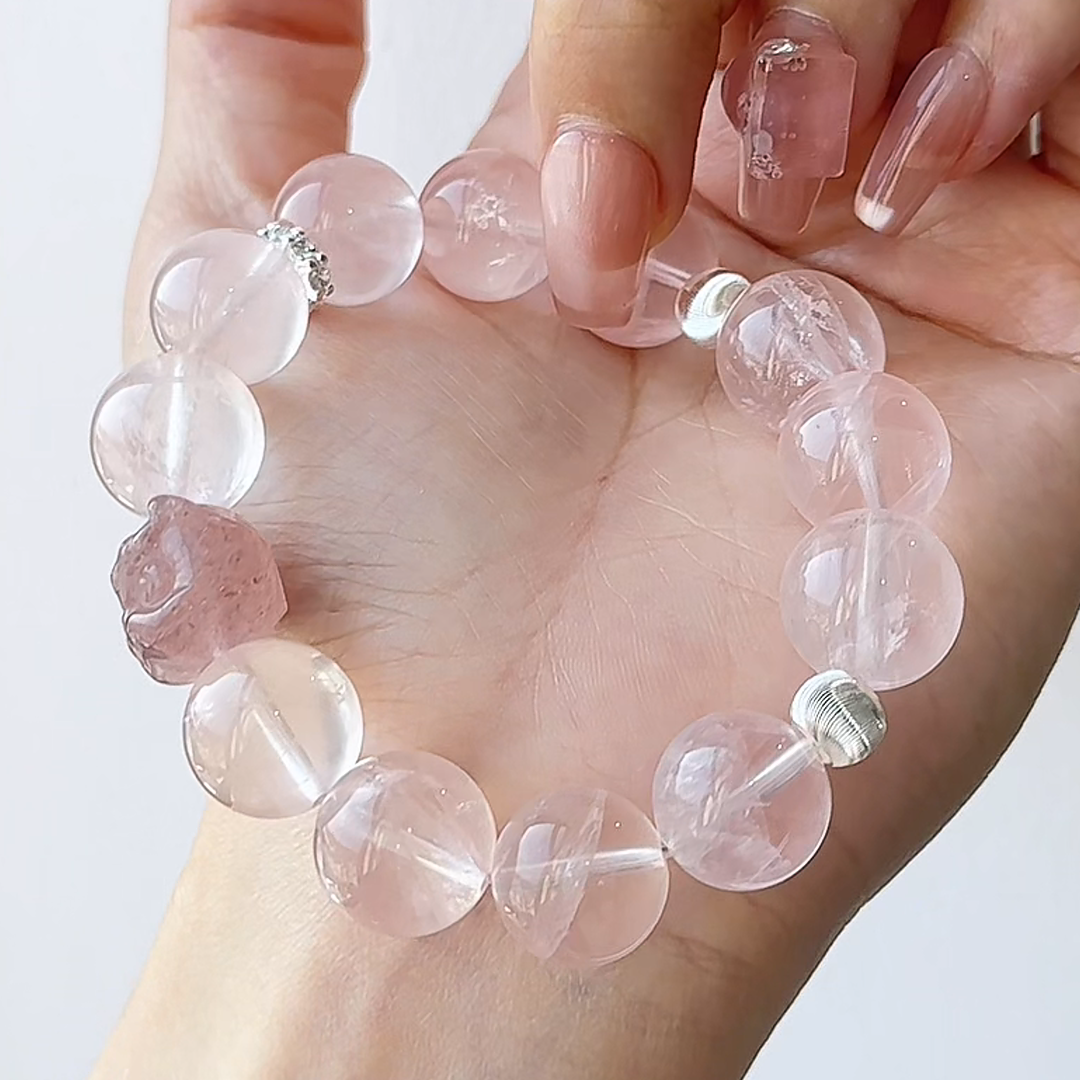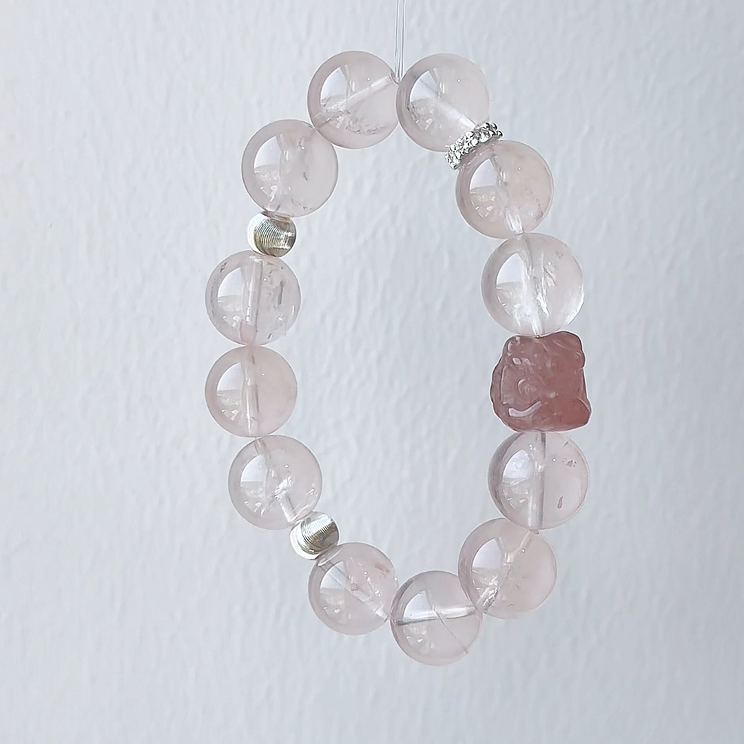 We combined the nurturing energy of Rose Quartz with the joyful vitality of Strawberry Quartz, and centered it with a uniquely powerful Strawberry-hued Lion charm. This piece is a wearable reminder that you don't have to choose. You can be both the fierce protector of your dreams and the embodiment of loving grace.